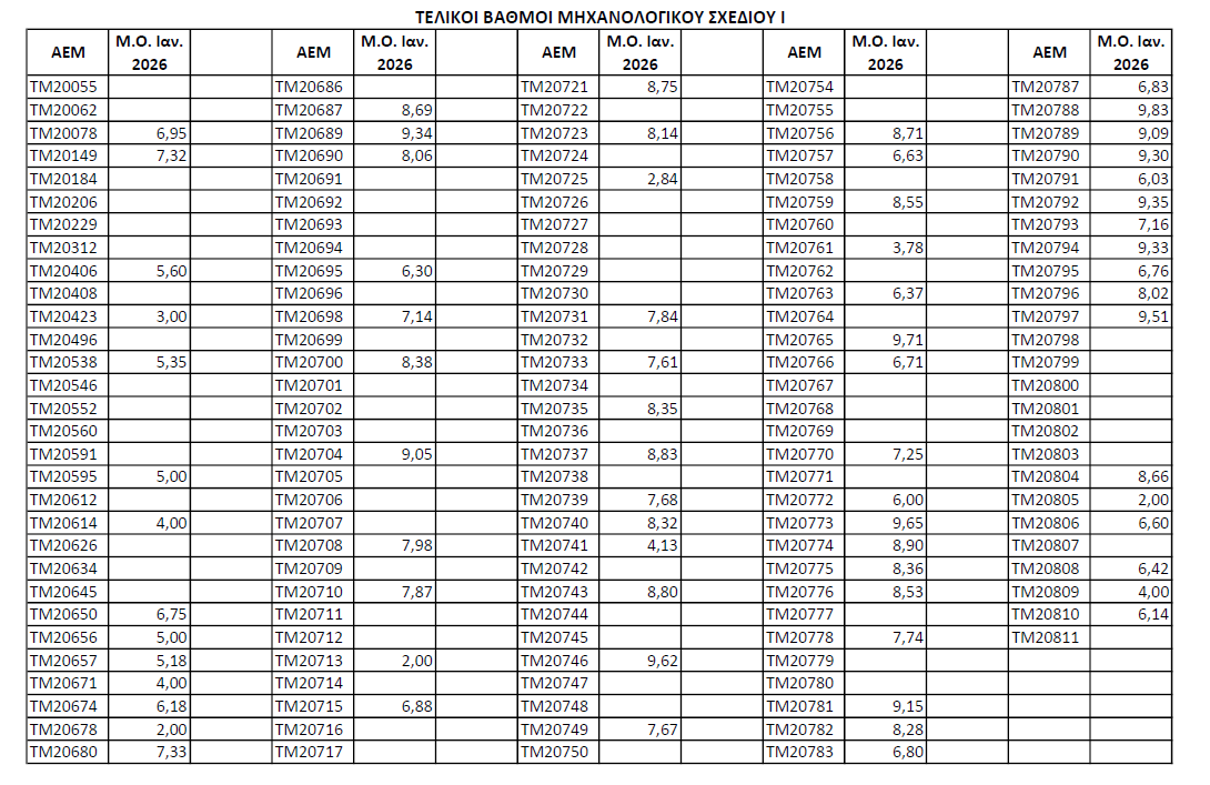 Τελικοί βαθμοί Σχεδίου Ι